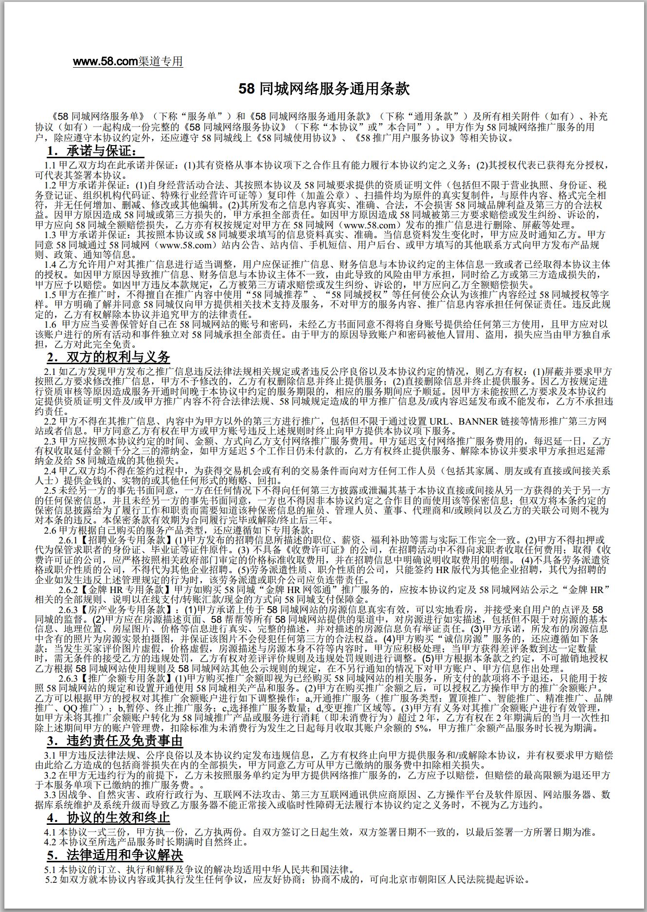 58同城網(wǎng)絡(luò)服務(wù)通用條款下載使用,請?jiān)谟蚁陆羌由w公章。